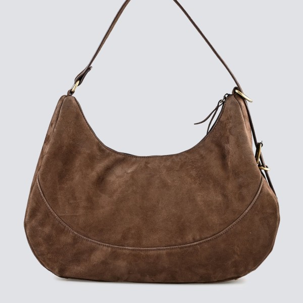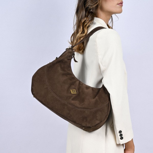 Κομψή και λειτουργική τσάντα ώμου κατασκευασμένη από 100% ανακυκλωμένο suede δέρμα, ιδανική για καθημερινή χρήση. Ο διαχρονικός σχεδιασμός της σε καφέ απόχρωση συνδυάζει στυλ και πρακτικότητα, ενώ το ευρύχωρο εσωτερικό της προσφέρει άνεση για την οργάνωση όλων των απαραίτητων αντικειμένων.