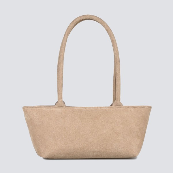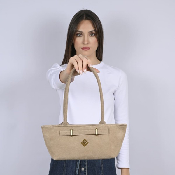 Μοντέρνα και κομψή τσάντα ώμου κατασκευασμένη από 100% ανακυκλωμένο suede δέρμα, ιδανική για καθημερινές εμφανίσεις. Ο minimal σχεδιασμός της συνδυάζει πρακτικότητα και στυλ, προσφέροντας τον απαραίτητο χώρο για τα προσωπικά σας αντικείμενα.