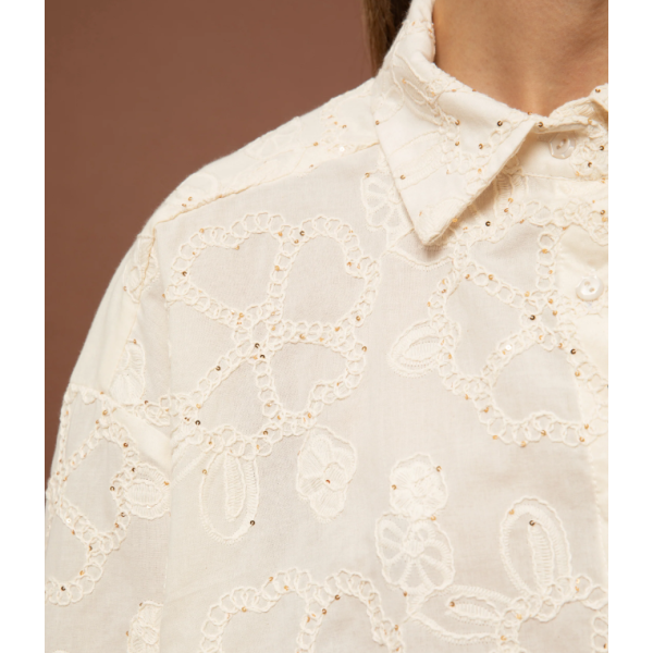 OVERSIZED BRODERIE SHIRT - BEIGE